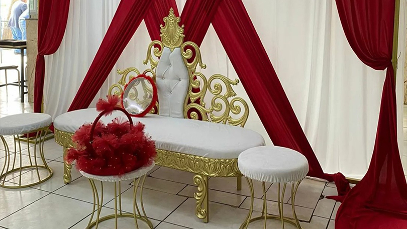 Organizasyonun en dikkat çekici ve görkemli parçası ise şüphesiz kına tahtıdır. Gecenin odak noktası olan taht alanı; altın varaklı klasik modellerden, bohem çiçeklerle süslenmiş modern tasarımlara kadar geniş bir yelpazede seçilebilir. Tahtın çevresinde konumlandırılan nedime puf koltukları, kına tepsisi standı ve arka plan (backdrop) süslemeleri, hem görsel bir şölen sunar hem de fotoğraf çekimleri için kusursuz bir fon oluşturur. Profesyonel bir kiralama hizmetiyle temin edilen bu tahtlar, gelinin zarafetini ön plana çıkarırken konuklara da unutulmaz bir görsel deneyim yaşatır.